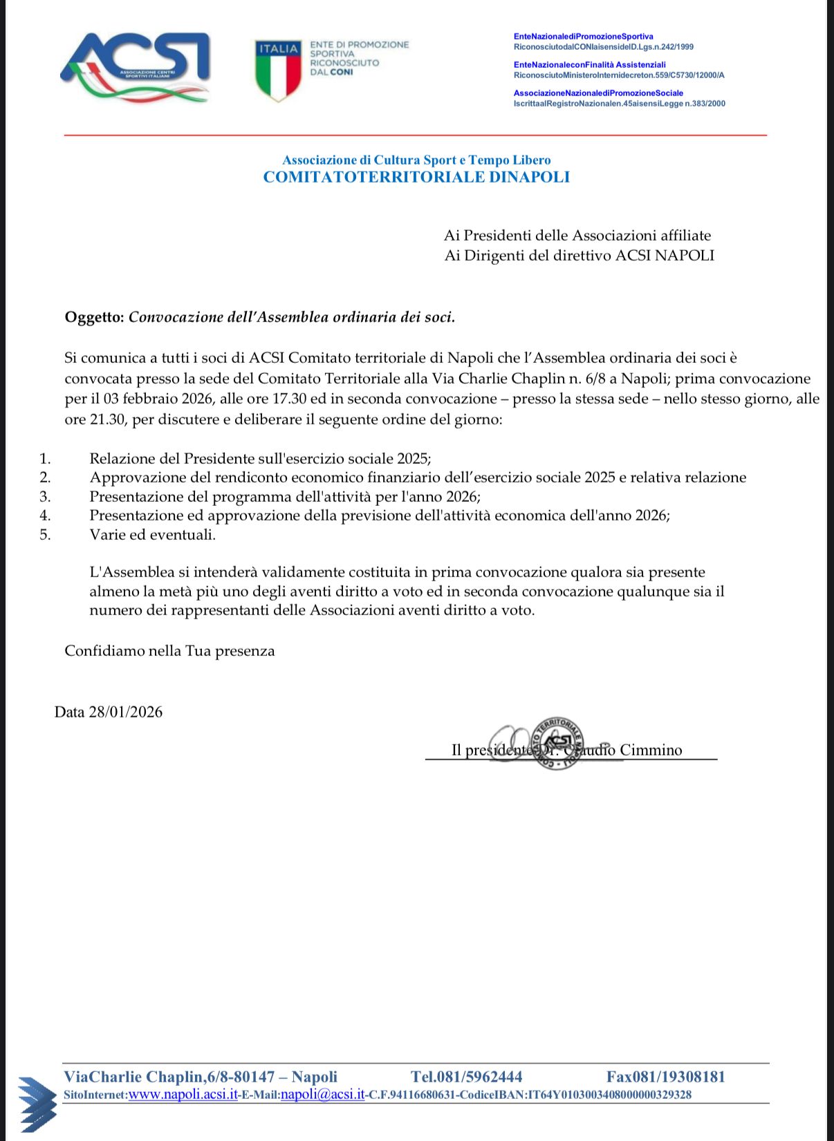 convocata presso la sede del Comitato Territoriale alla Via Charlie Chaplin n. 6/8 a Napoli; prima convocazione