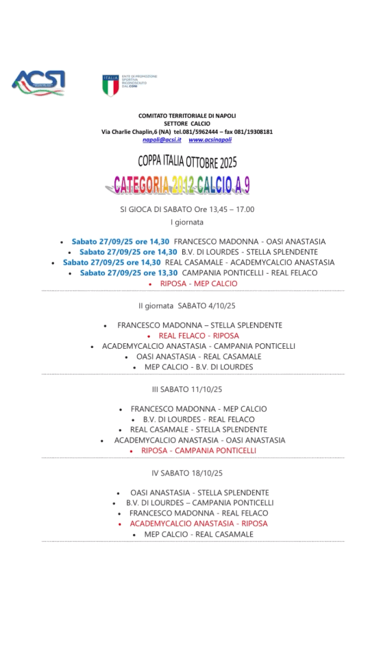 20-09-2025 16:19 - Campionati e Tornei di Calcio
