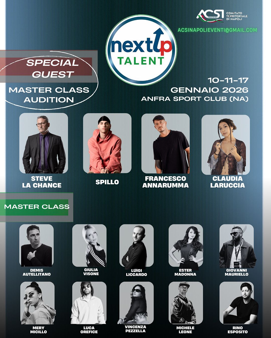 ACSI Napoli Eventi e Rino Esposito presentano con orgoglio i maestri protagonisti della nuova edizione del talent Next Up!
