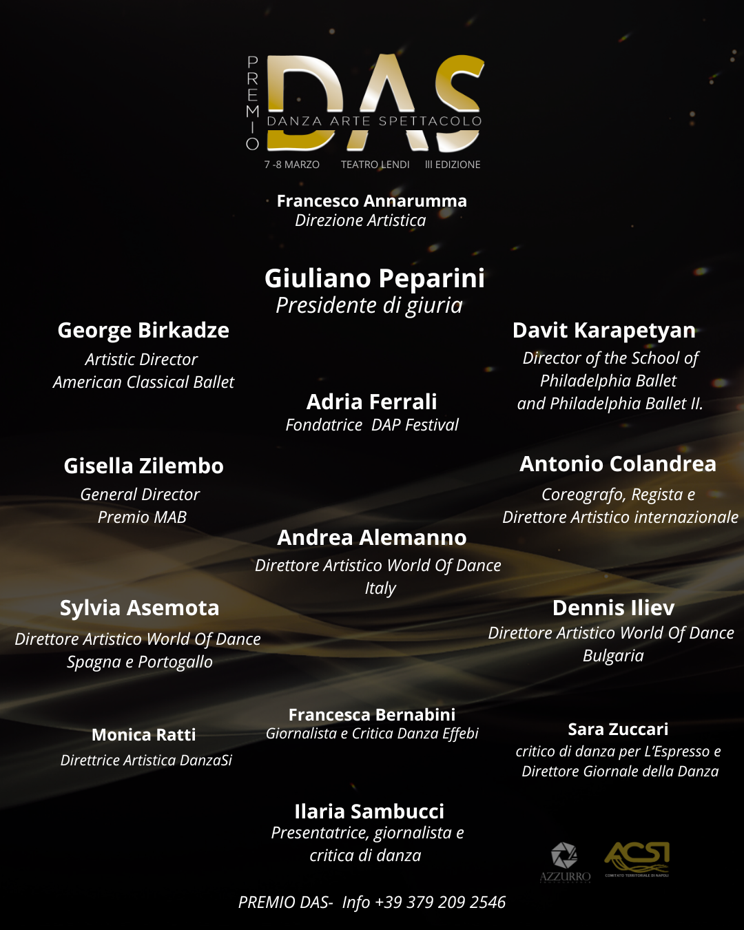 ✨Noi del comitato ACSI Napoli siamo lieti di affidare ancora una volta, la Direzione Artistica del concorso Premio DAS 2026 al Maestro e Coreografo Francesco Annarumma.